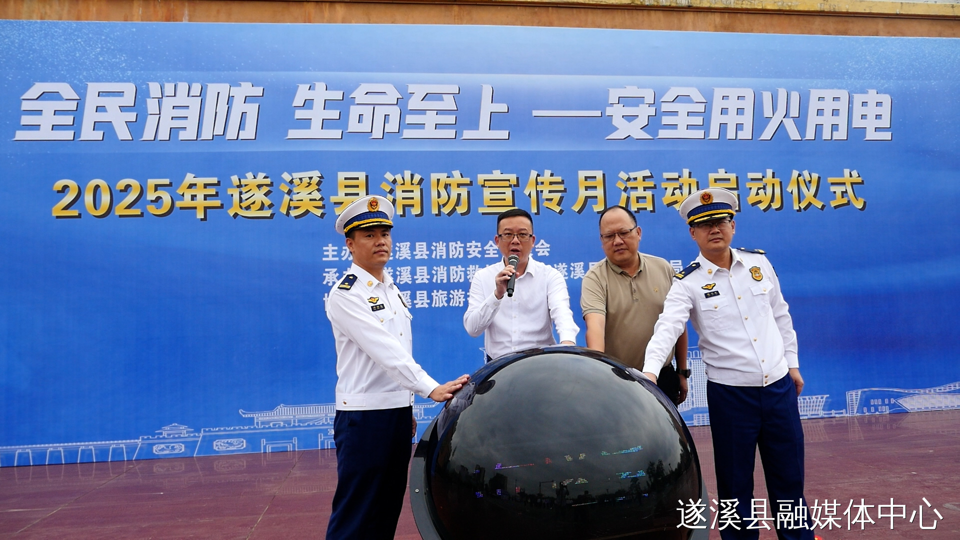 許阮鋒宣布2025年遂溪縣消防安全宣傳月活動正式啟動,出席活動領導共同按下啟動鍵,標志著全縣消防宣傳月系列活動全面展開。